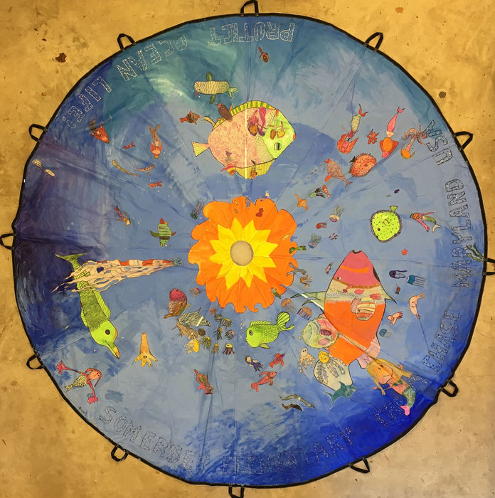 Collaborate with your community to create a vibrant parachute that showcases powerful environmental messages and sustainability pledges.